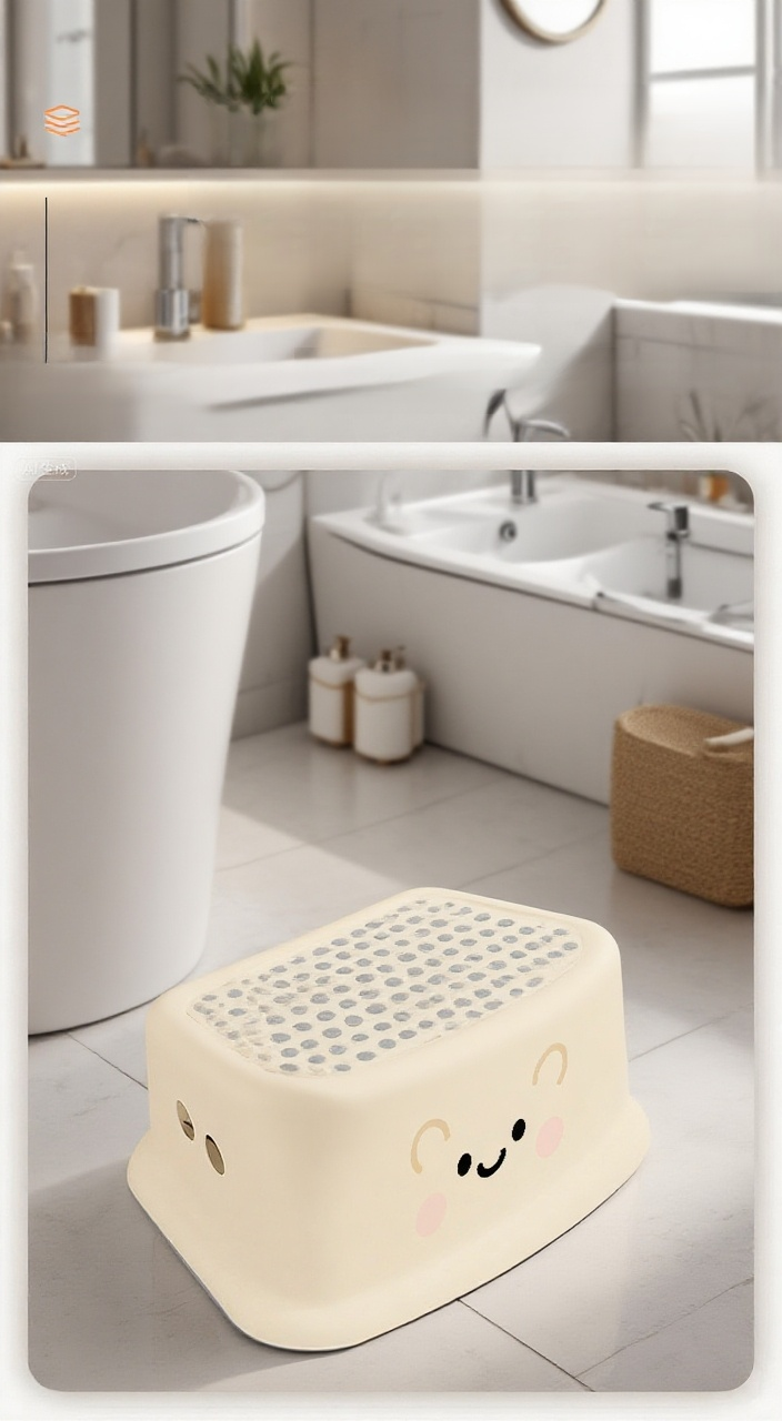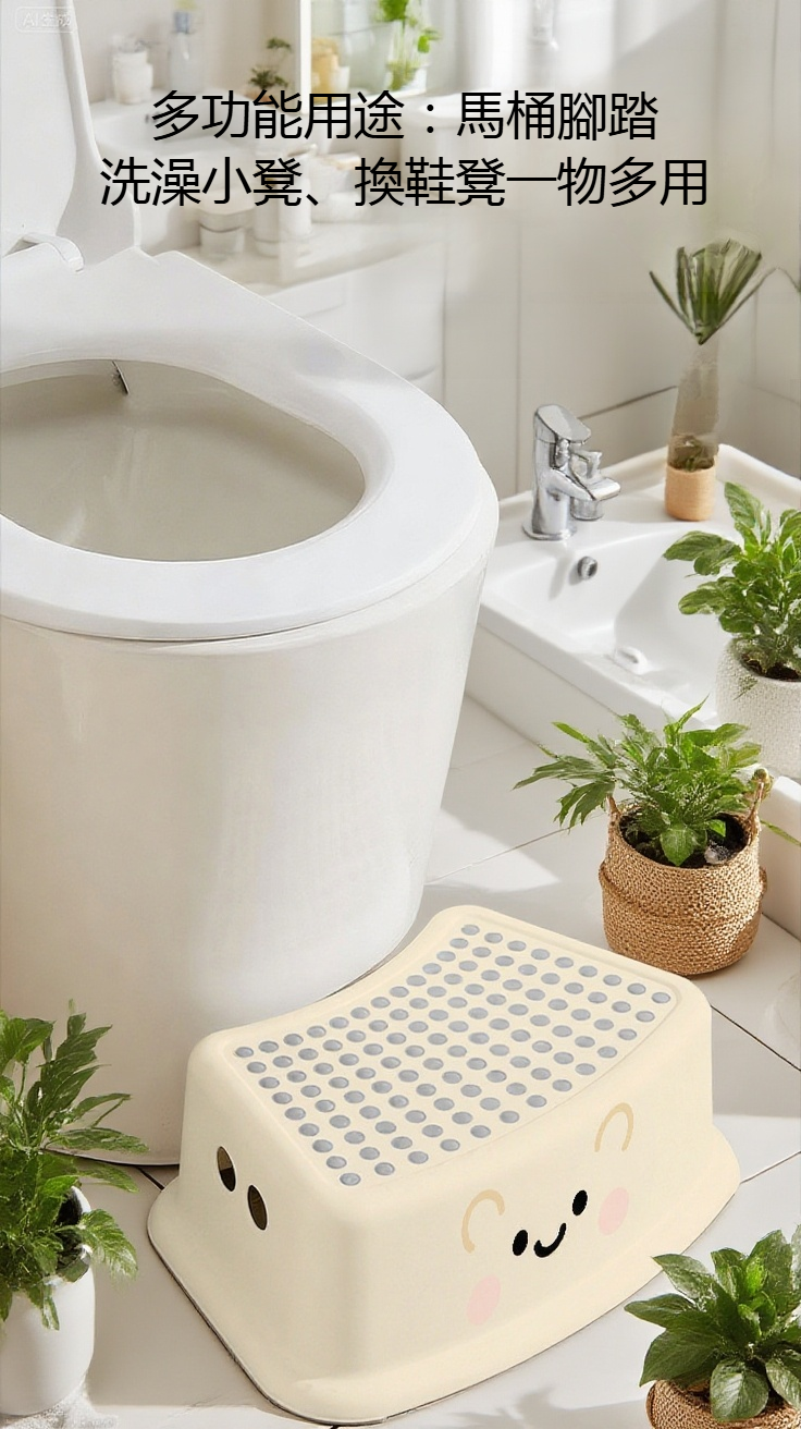 奶油風馬桶凳,質感設計,輕巧易移動,防滑底座,適合衛浴空間,提升如廁舒適,易清潔材質,適用多種馬桶款式。